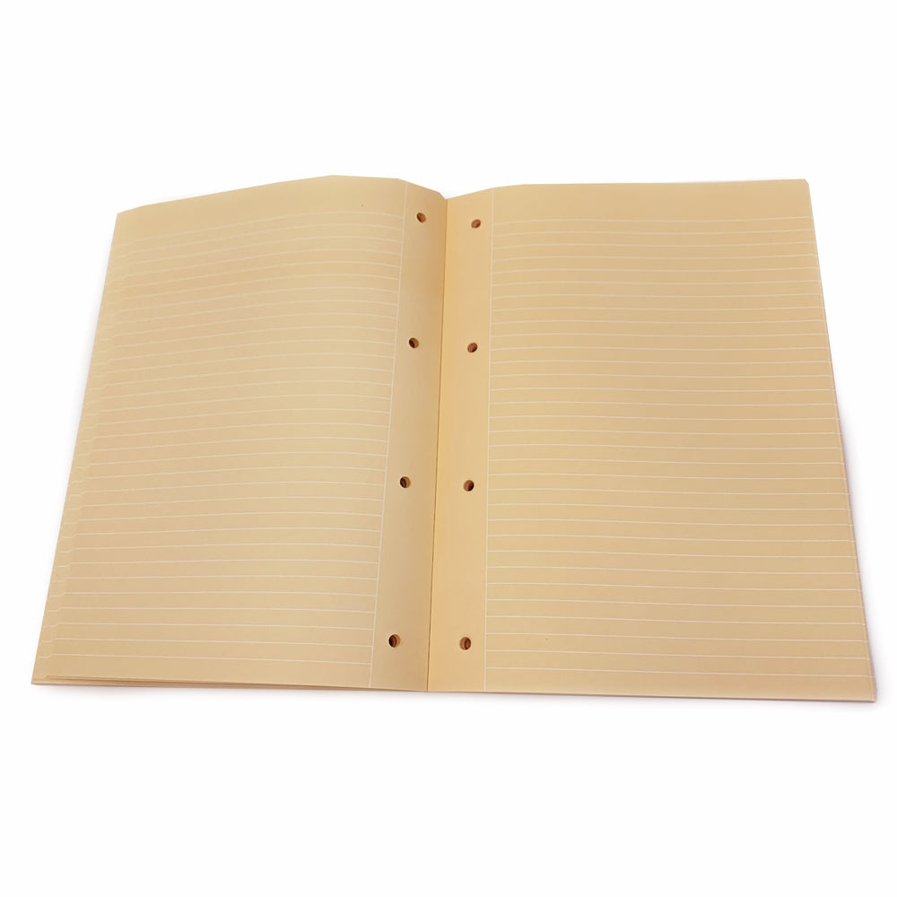 This paper has a soft peach colour that is gentle on the eye and research shows is preferable to cool background colours. The pale lines are subtle and do not distract from the writing. This paper aims to reduce visual stress, aid concentration, reduce tiredness and make the writing easier to read.