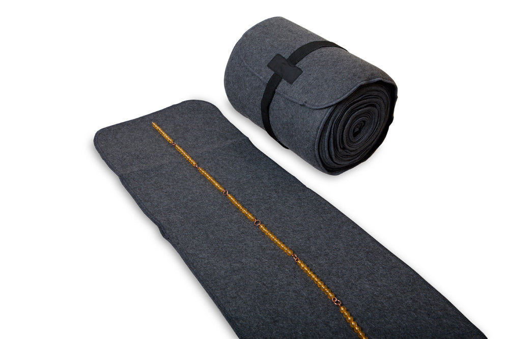 This is a cloth mat on which the thousand bead chain can be demonstrated at its full length.