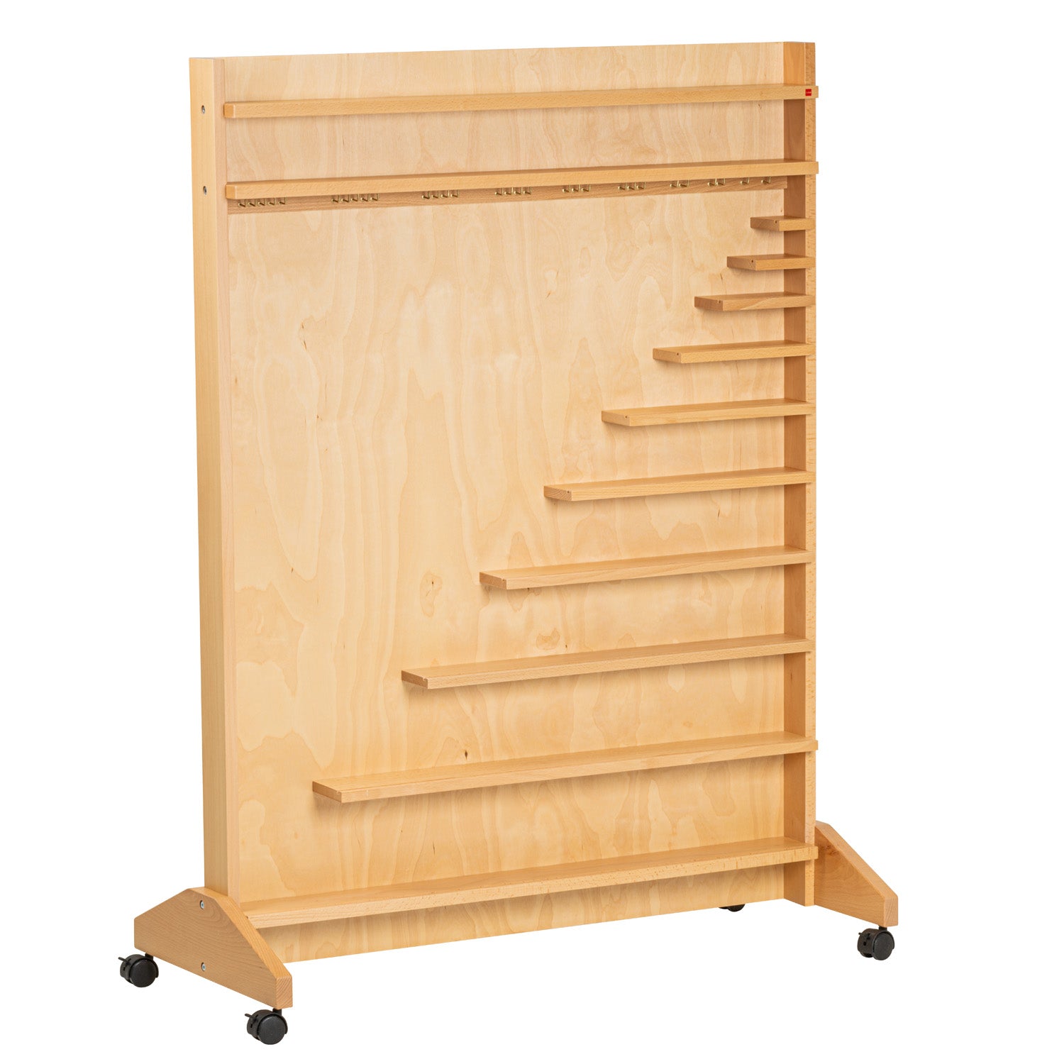 A beech plywood cabinet for storage of The Bead Material. Includes a set of castors to move it easily around the classroom.