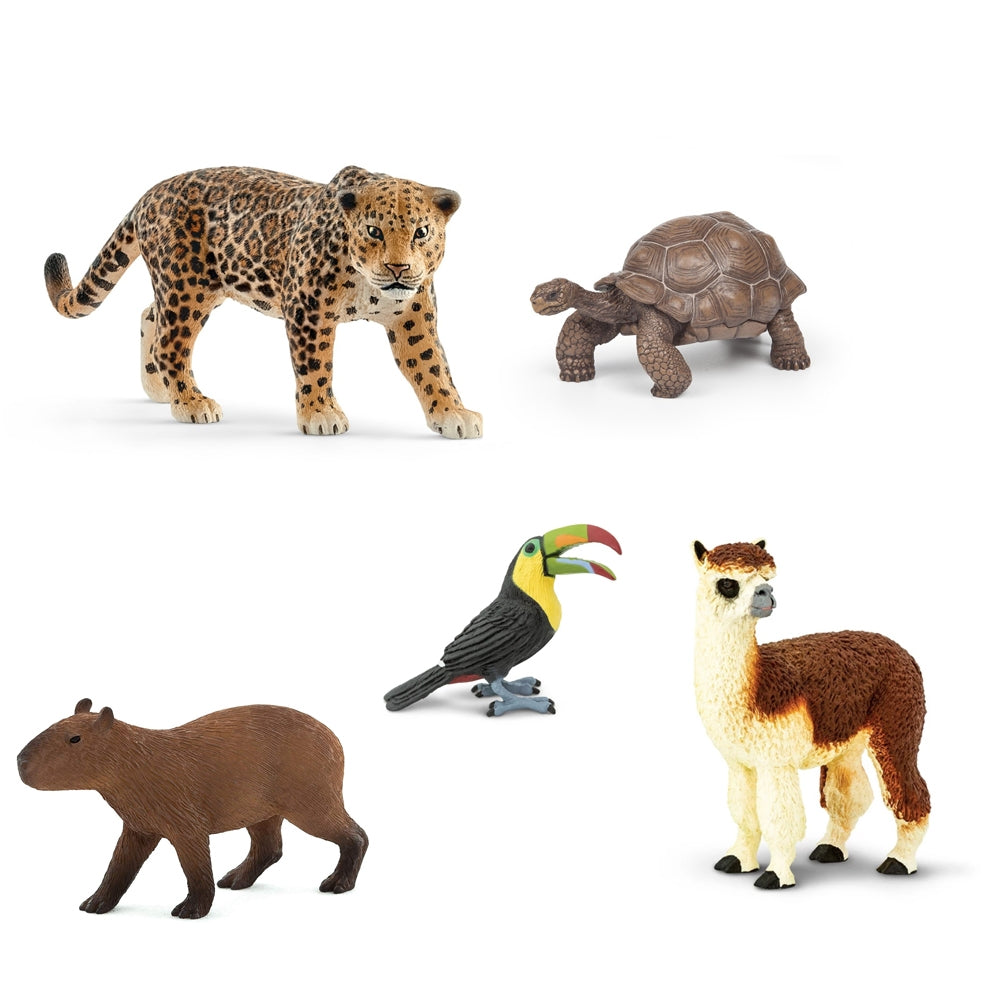 5 finely detailed quality animal figures that are indigenous to South America, a .pdf file to make matching cards is available separately: