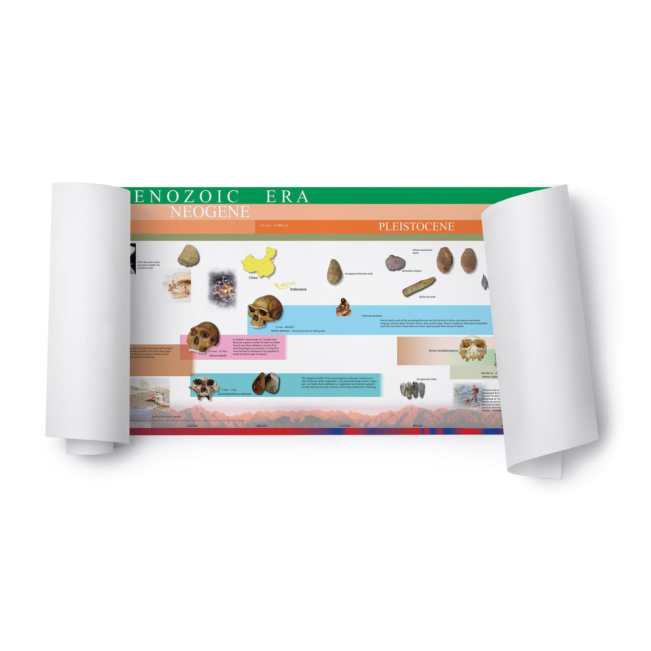 This timeline is based on the latest research, depicting the development of man from early Australopithecines to modern day Hominids, using actual photographs. Updated to show the current research depicting our possible common ancestry with Neanderthalensis, this timeline also shows the climatic, continental changes, and the development of tool technology.