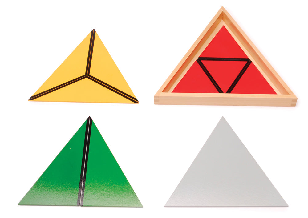 5 sets of constructive triangles to give a sensorial experience of 2-dimensional geometry.