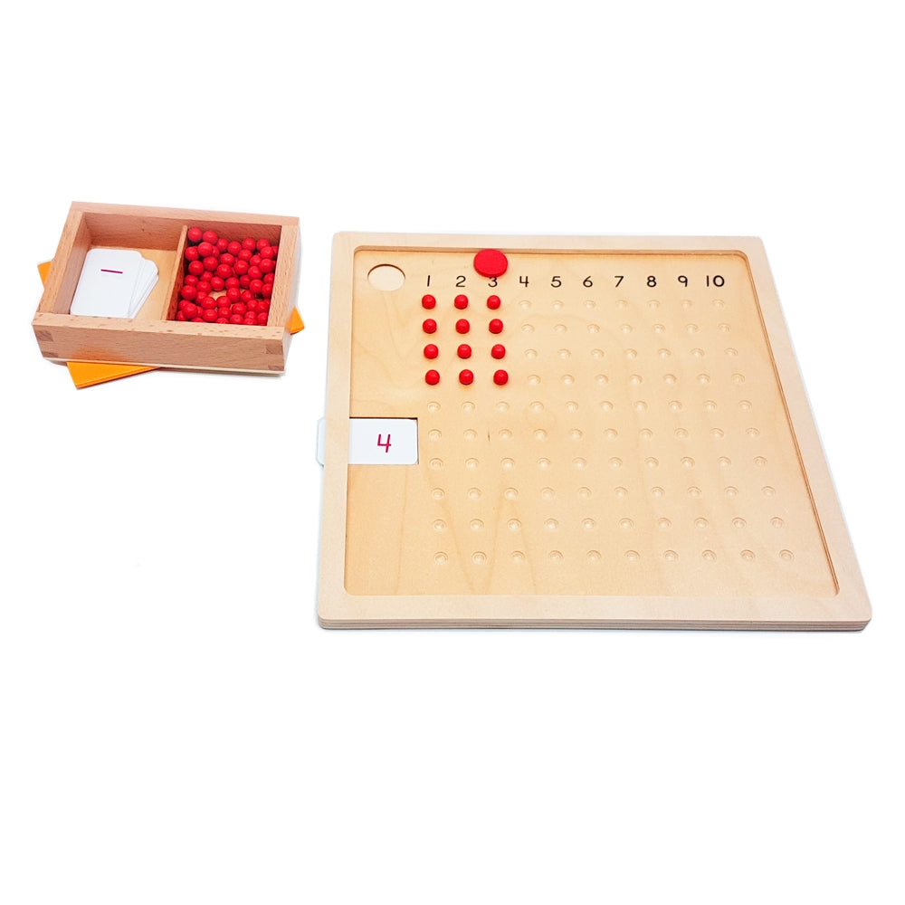 Multiplication tables with the Multiplication Board gives the child a concrete experience of multiplication tables.