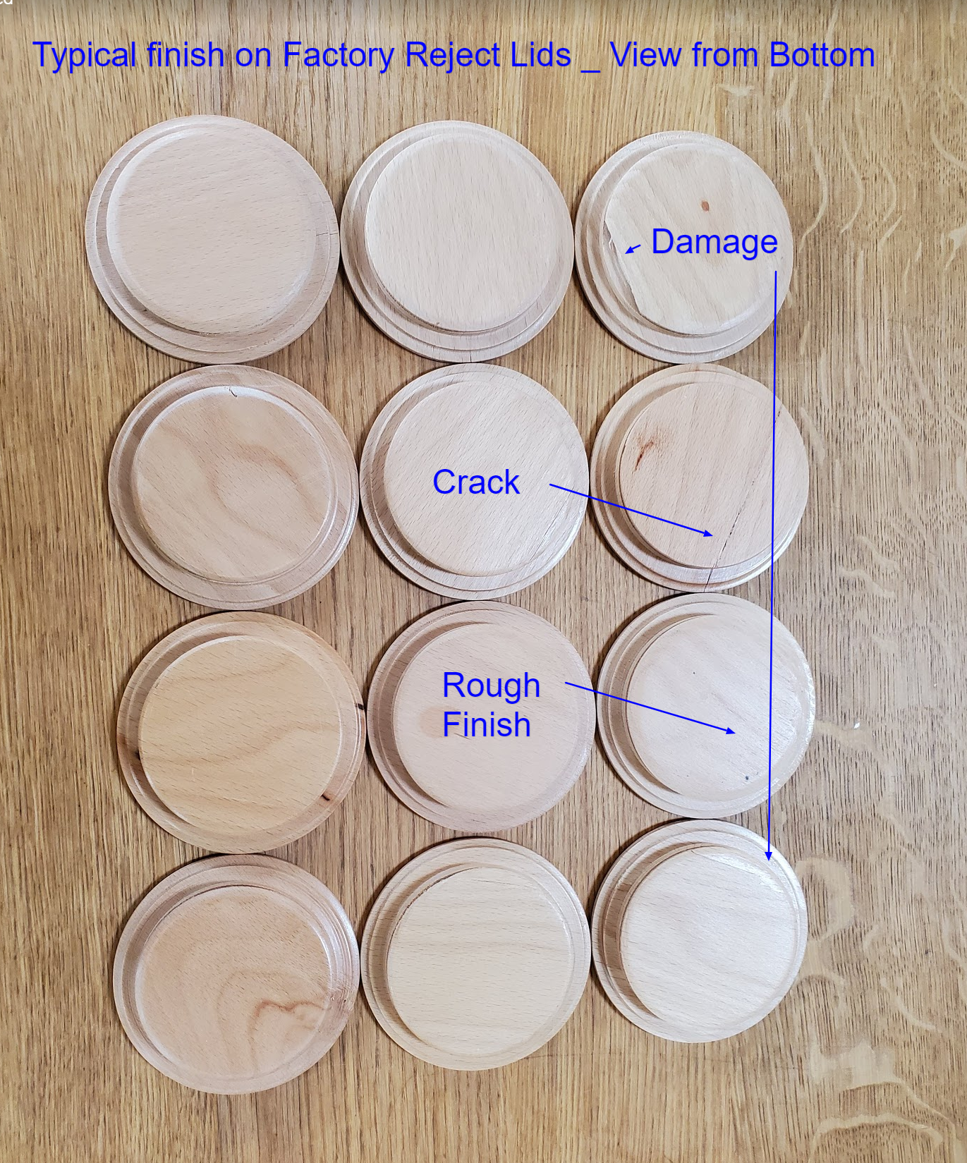 Outlet Set of 12 100mm Large Wooden Lids. Fits WECK Models 738 739 740 741 742 743 744 745 748. (Factory Rejects)