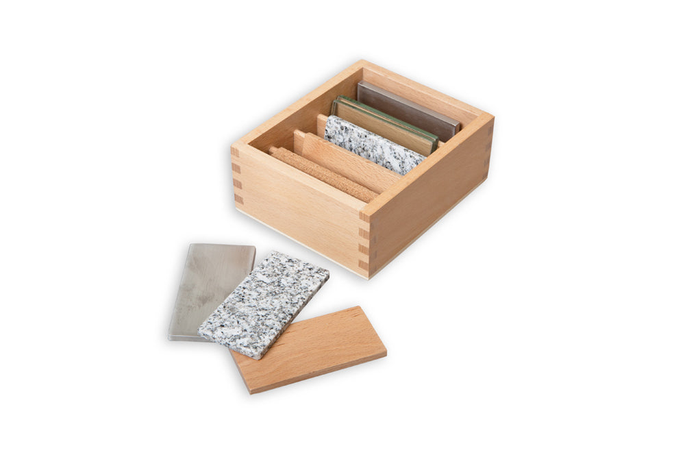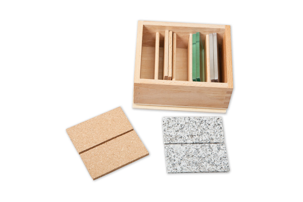 The different pairs of materials appear to have different temperatures and are used to develop the child's thermic sense.