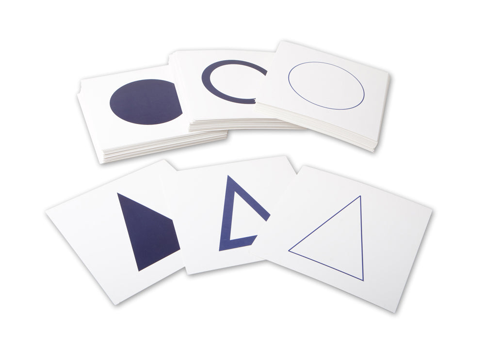 A single replacement card from the 3 sets of 35 shape cards, with each shape depicted fully coloured, with a thick outline and with a thin outline, giving the child a progressively more abstract view of a shape. 14cmx14cm