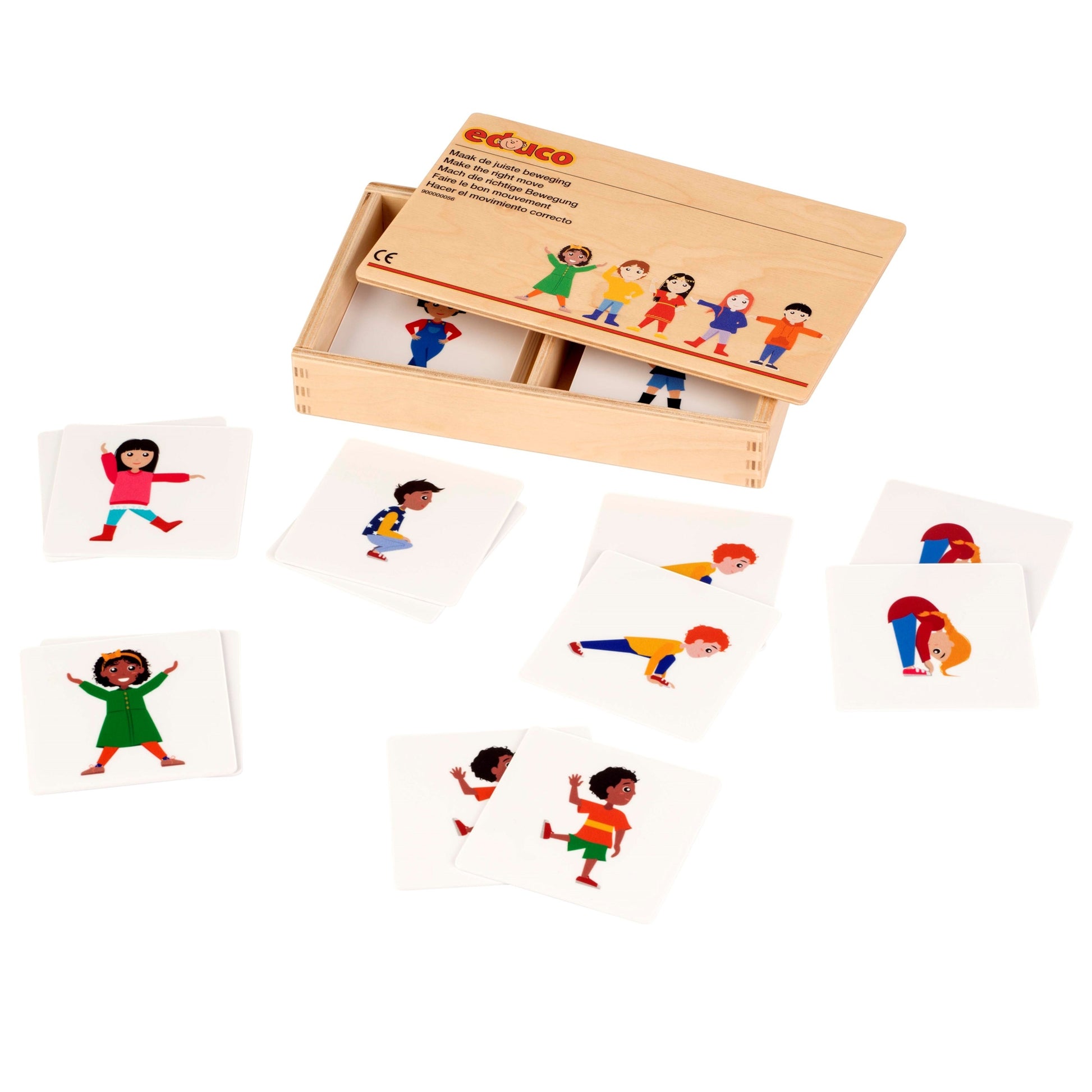 In the game all 16 postures occur twice, making it also possible to play a memory game. This stimulates visual perception and visual memory.