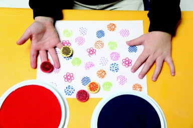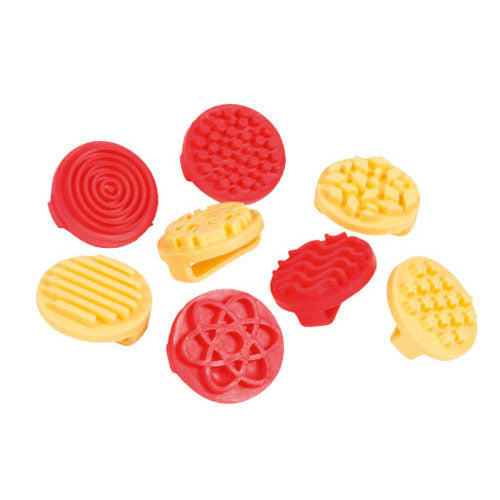Set of 8 finger printers that children can use with paint or clay. Made from durable hard rubber and with handles that easily slip onto 1 or 2 fingers.