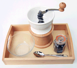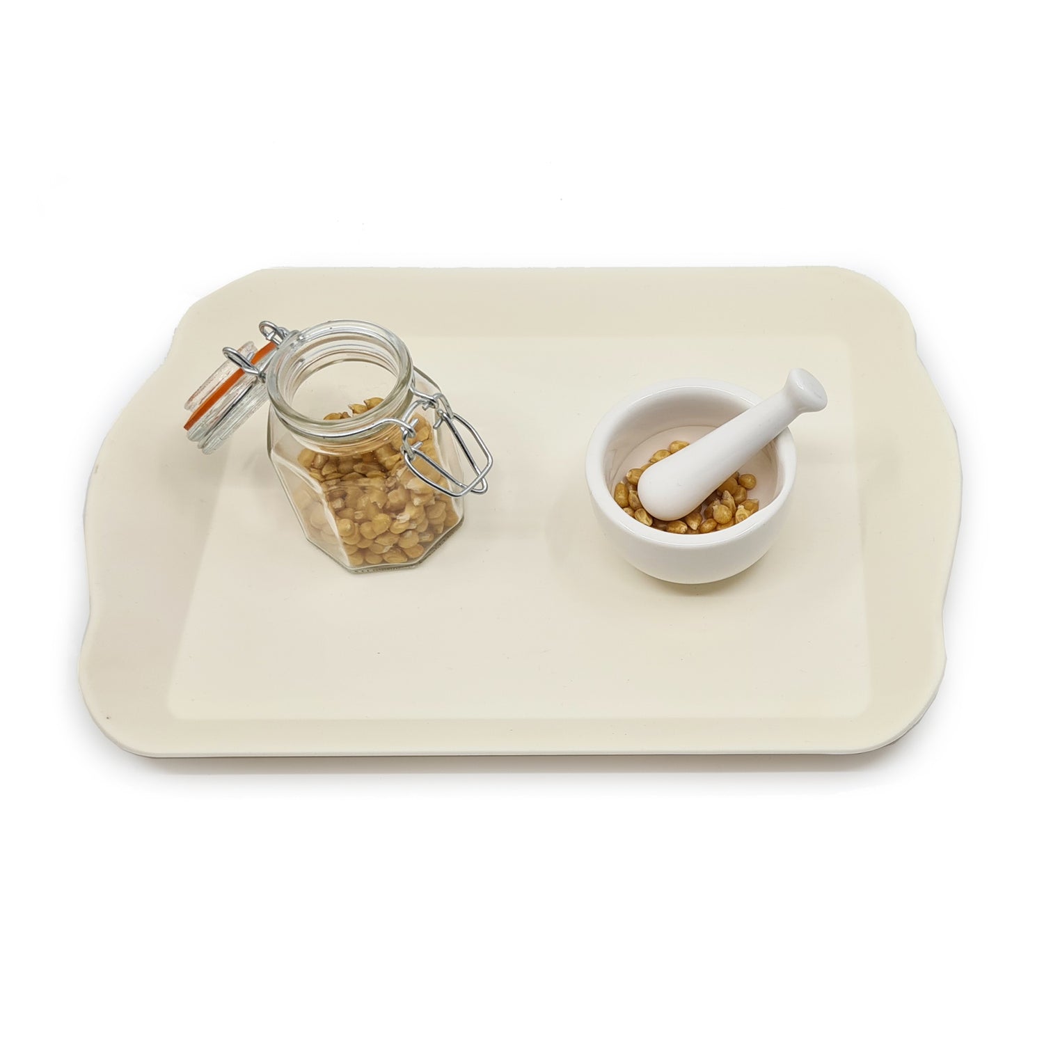 A set of six mini Kilner style jars for storing items in the Practical Life area. The lever closure makes an interesting point of interest.