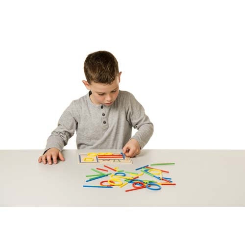 Avec des bagues et des bâtons, créez des figures de différentes couleurs. Copiez les fiches d'instruction ou créez tes propres créations uniques. Améliorer la motricité fine et l’orientation spatiale.