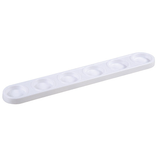 Plastic tray for 6 paint pots in a row. Pots excluded.