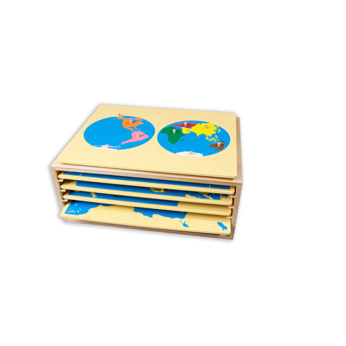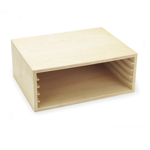 A wooden cabinet for storing five 37cm board puzzles, ideal for our small map puzzles up to 2cm thick. By displaying the puzzles they look more attractive and the children are more likely to choose them to work with.