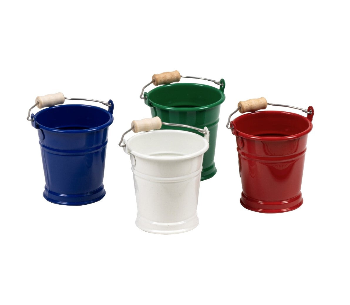 This Mini Metal Bucket is suitable for many practical life exercises. Available in 4 colours. Perfect for seed germination activities. Made of powder coated metal. Measures: 6 x 5.5 cm