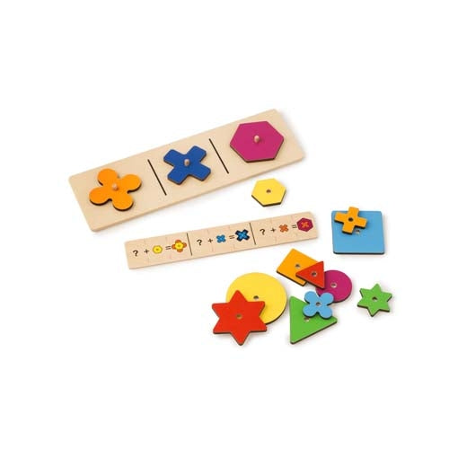 - 14 wooden shapes in various colours