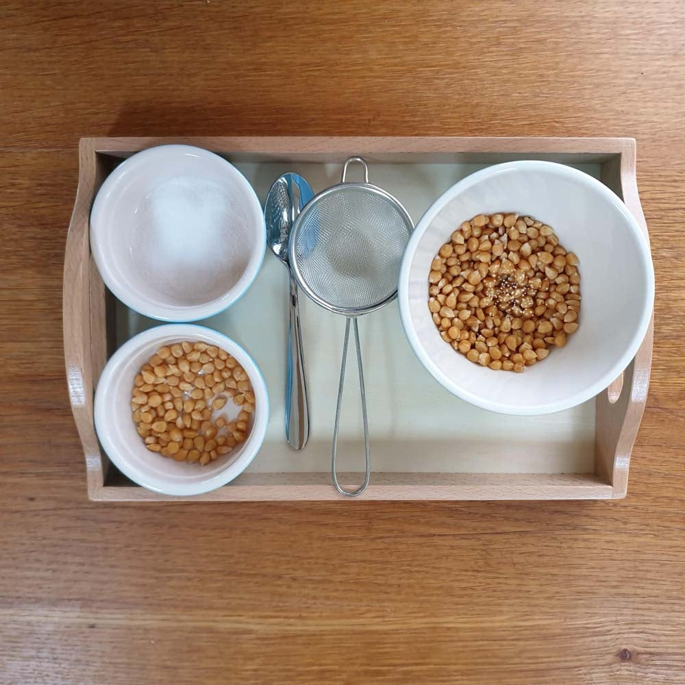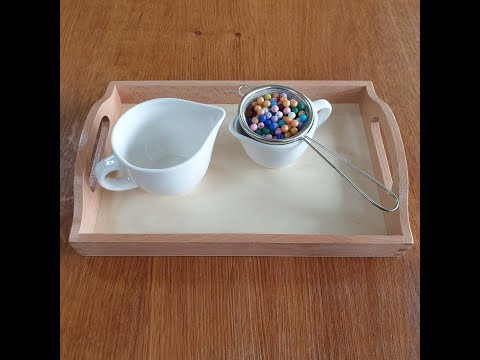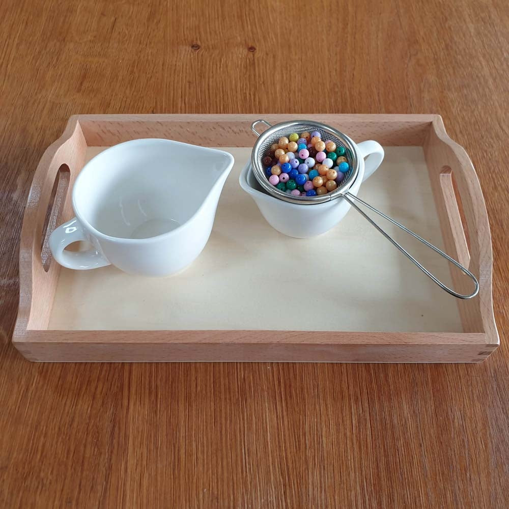 A 7cm diameter sieve with a 10cm handle, ideal for the Practical Life area.