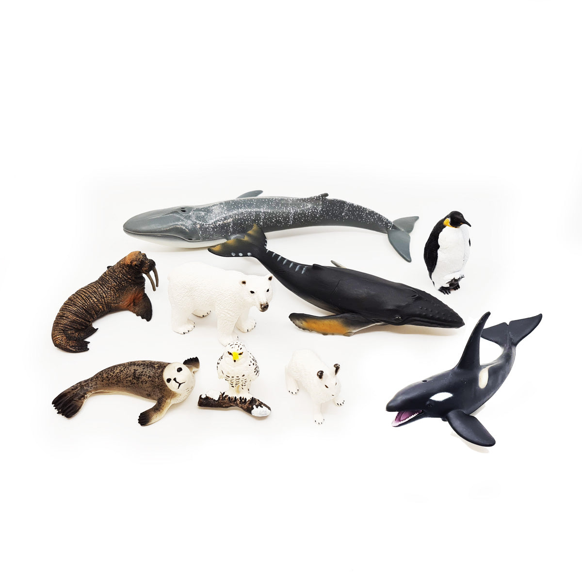 Blue whale, Orca, Humpback whale, Emperor penguin, Seal, Walrus, Polar bear, Arctic hare, Snowy owl