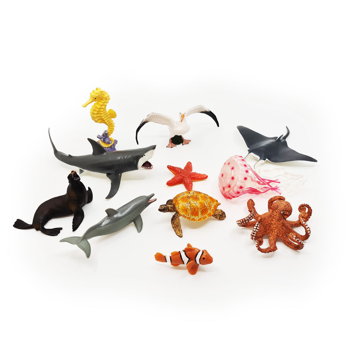 Manta ray, Dolphin, Starfish, Sea turtle, Octopus, White shark, Clownfish, Albatross, Seahorse, Sea lion, Jelly fish