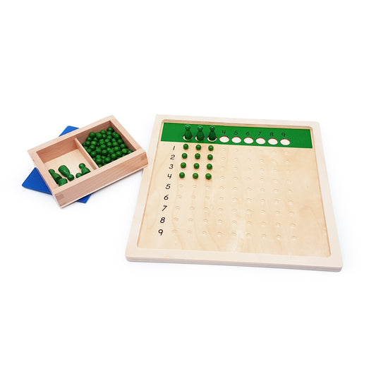 Multiplication tables with the Multiplication Board gives the child a concrete experience of multiplication tables.