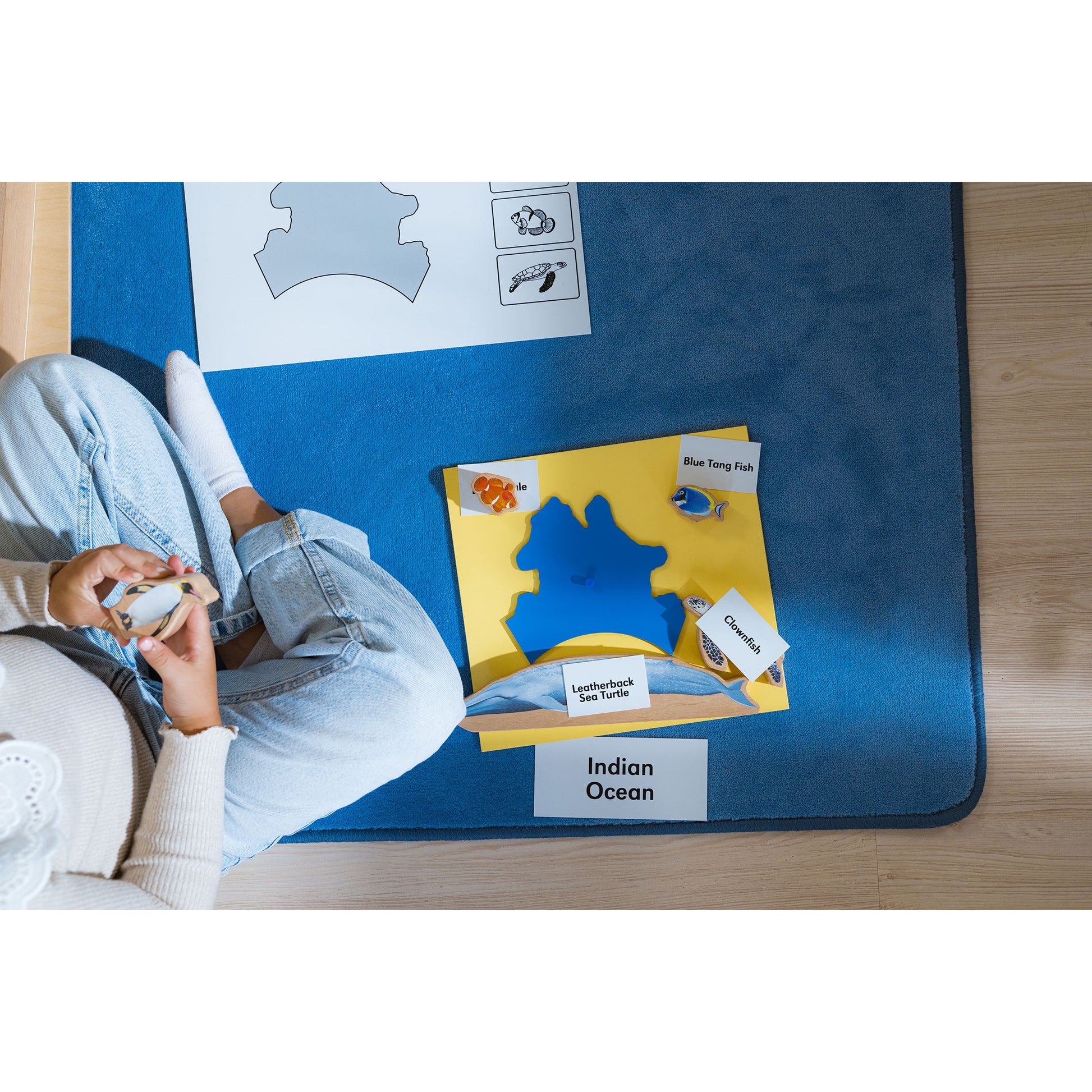 A first introduction to the animal species from each of the 5 oceans. Through working with The Animal Ocean Box, children are inspired to work with the Puzzle Map Of The Oceans (Item Number: 0177C0). Set includes: 20 high quality wooden animals, separate Ocean, picture, and label cards, 1 copy card, and instructions. Housed in a nesting beechwood box. Measures: 38 x 29 x 10 cm.