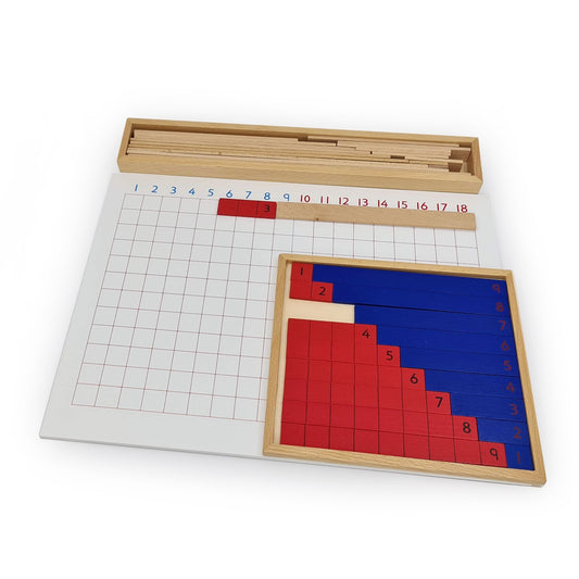 Two sets of colour-coded unit subtraction equation slips. One set of combinations for each of the two Subtraction Working Charts (#0.142.B0). Each set supplied in separate plastic boxes.