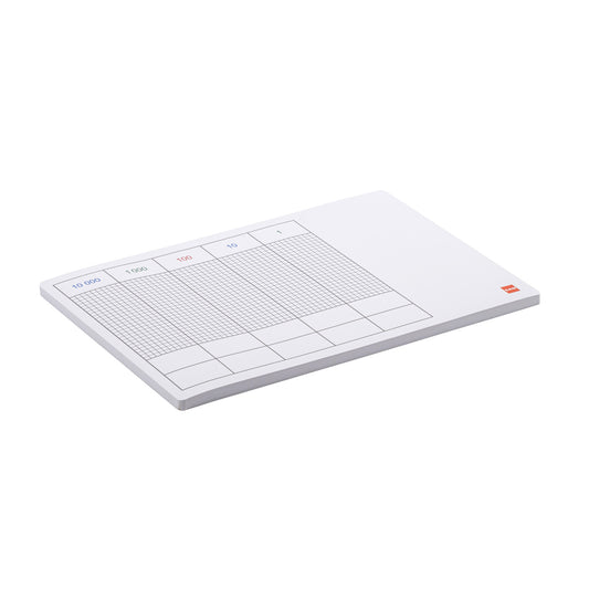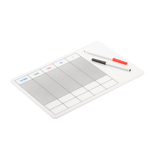 The Dot Exercise provides practice in decimal system addition. Through use, the child further explores column addition and experiences the mechanism 'carrying'. The Dot Exercise grid is printed on a whiteboard upon which the child writes with water based pens of 2 different colors. 2 pens included.