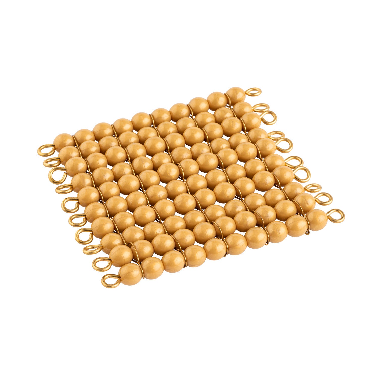 A single Golden Beads Square of 100 Plastic beads This is an educational product and is only to be used under the supervision of professional trained adults in a school environment....