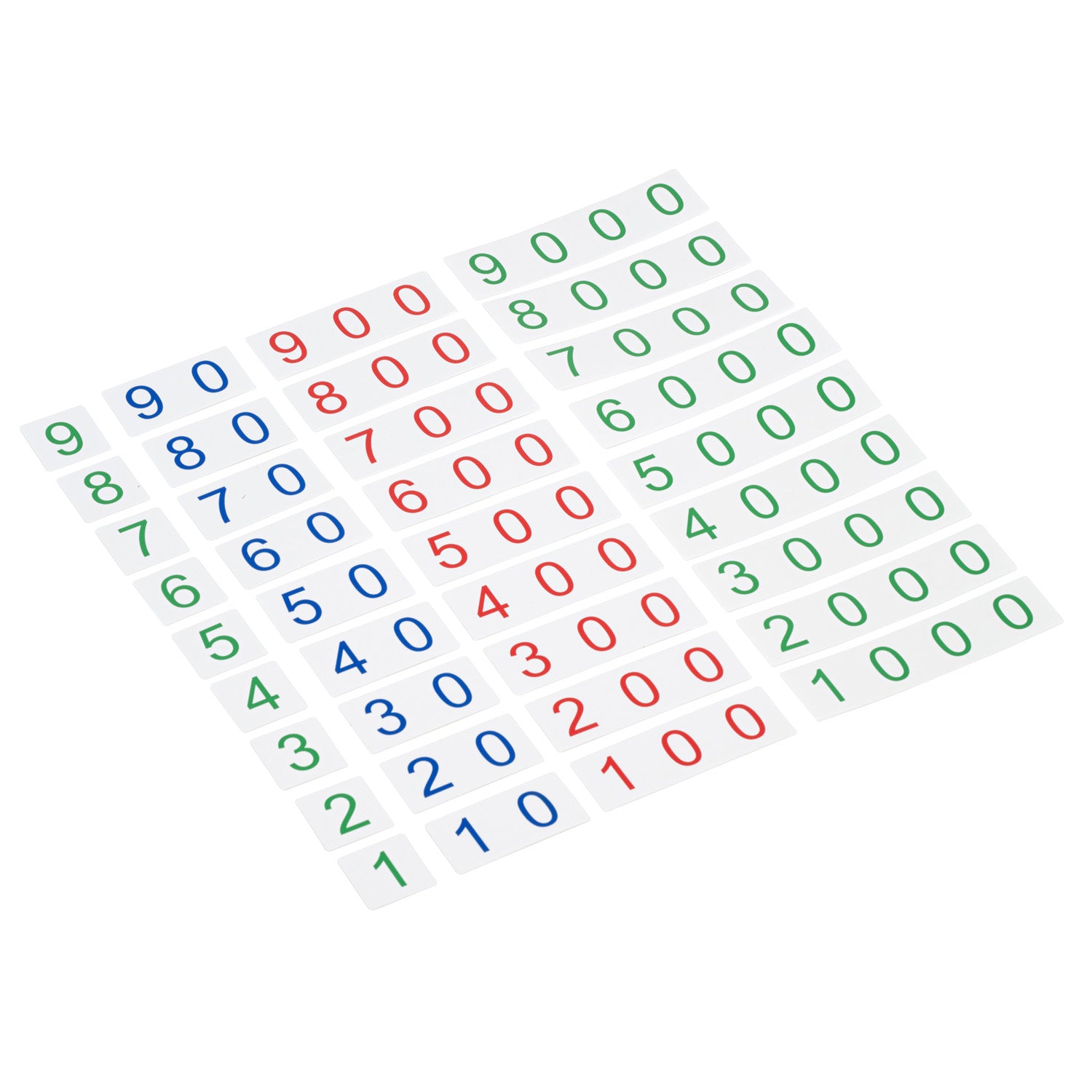 A set of plastic number cards to make numbers from 1 to 9999 This is an educational product and is only to be used under the supervision of professional trained adults...