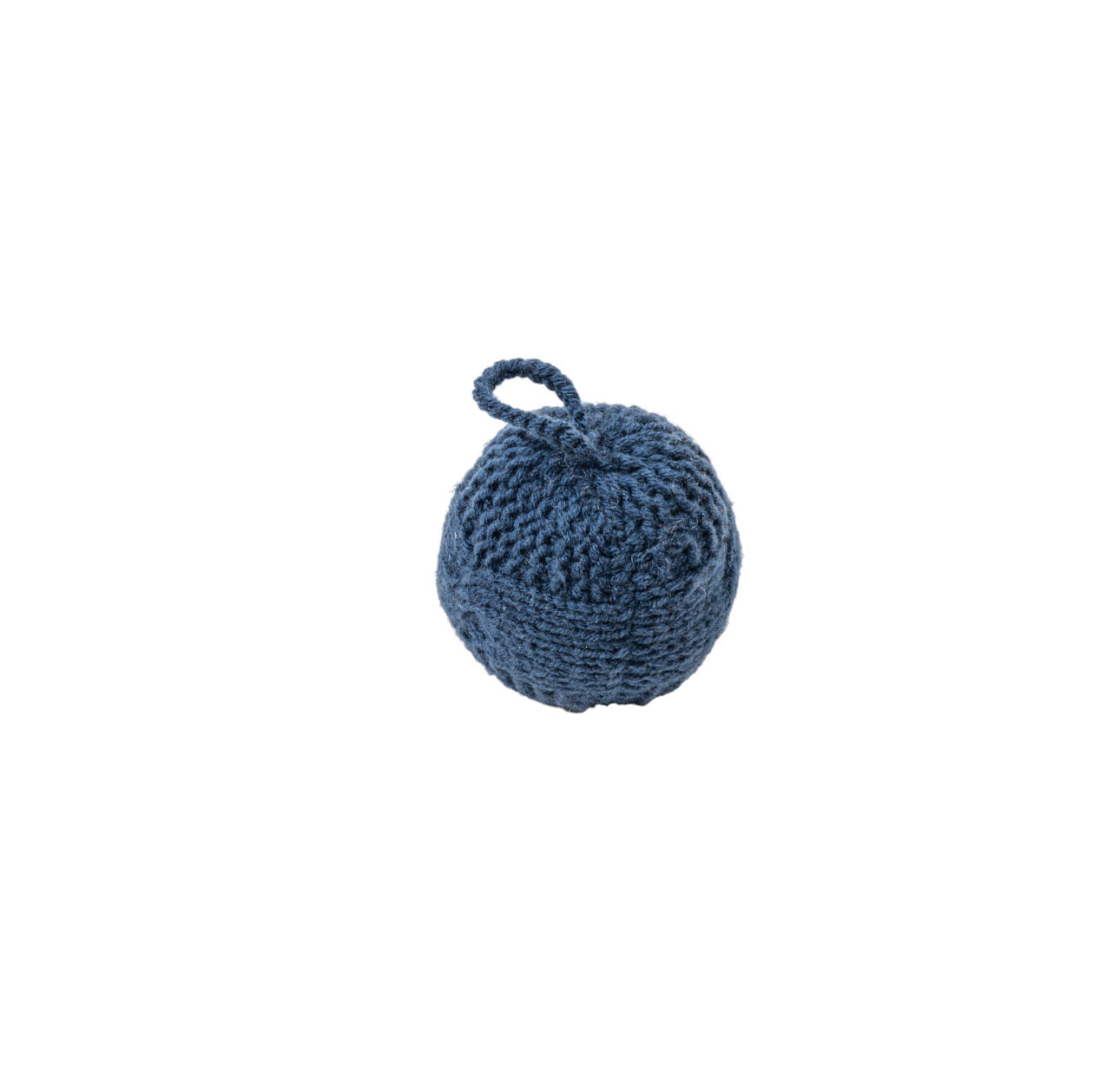 This knitted ball contains a little bell. It stimulates the baby’s hand and arm movement.