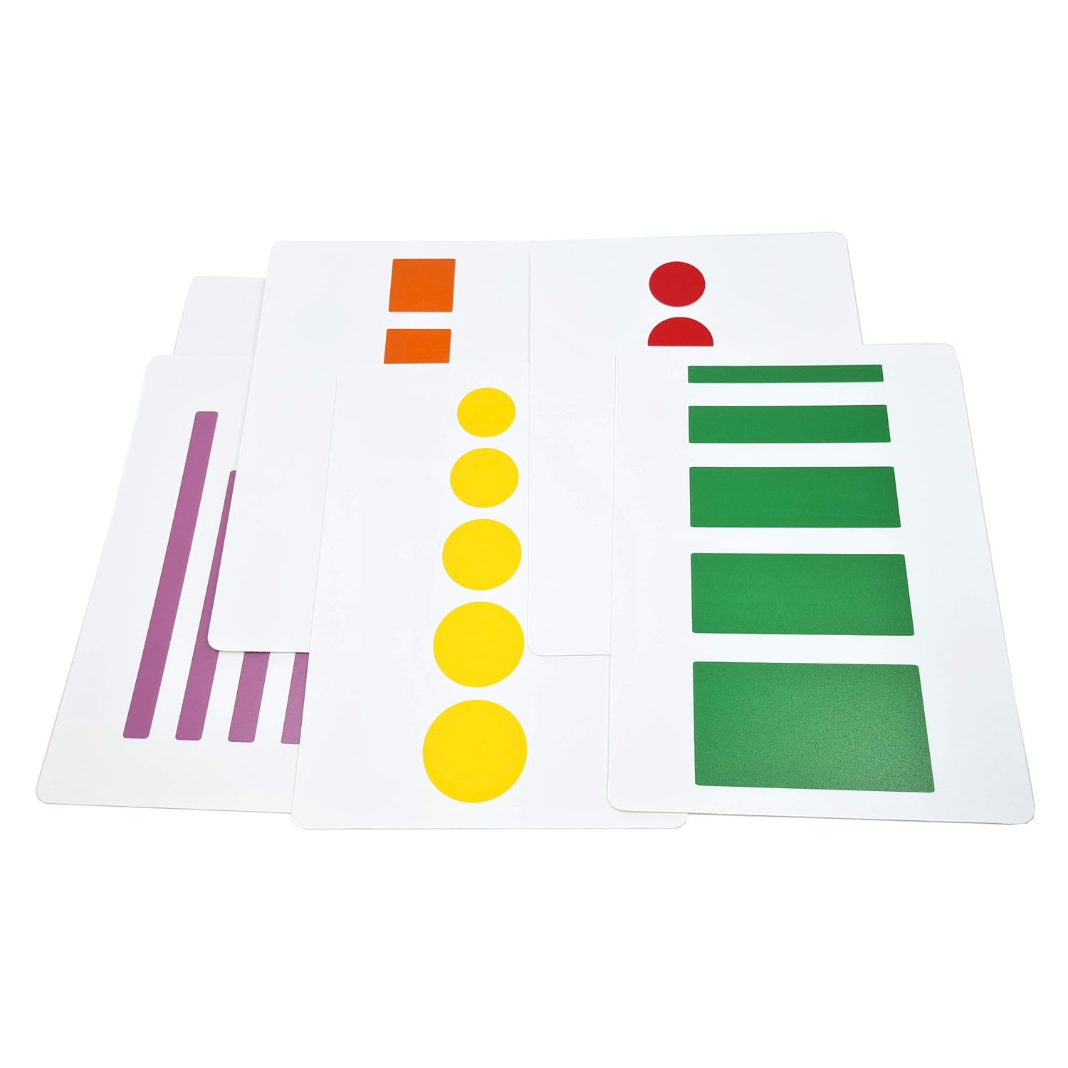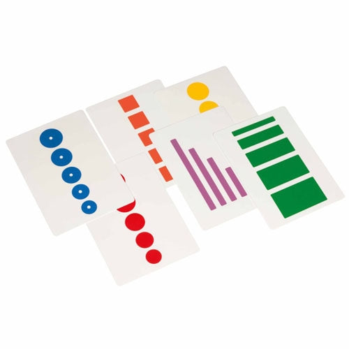 The cards match the 5 largest red and yellow knobless cylinders and the 1st 3 cylinder blocks