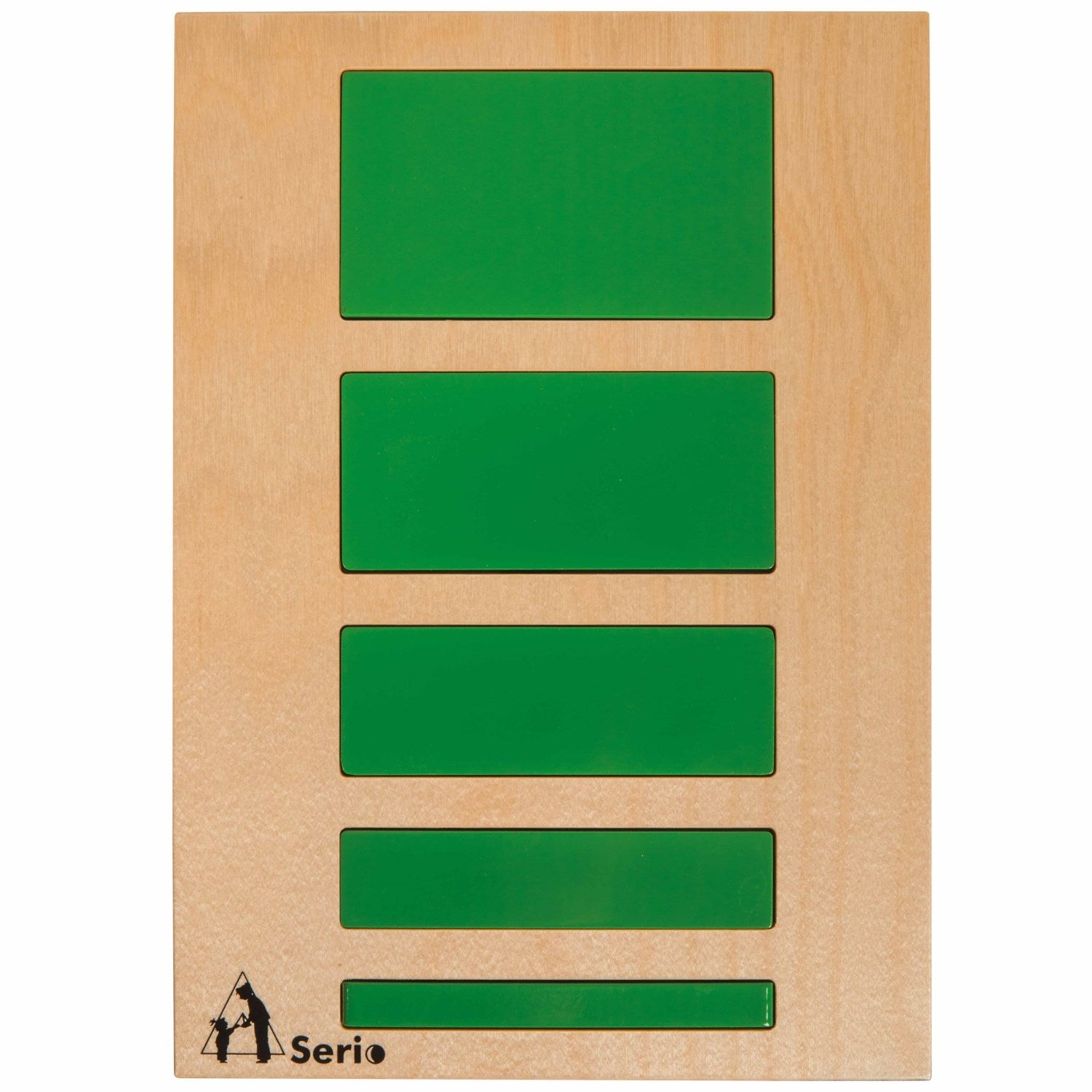 The different Serio activities (see the Related Products below) are designed for pre-school children to order 3-dimensional objects by their features of size, thickness, length, height, and width.