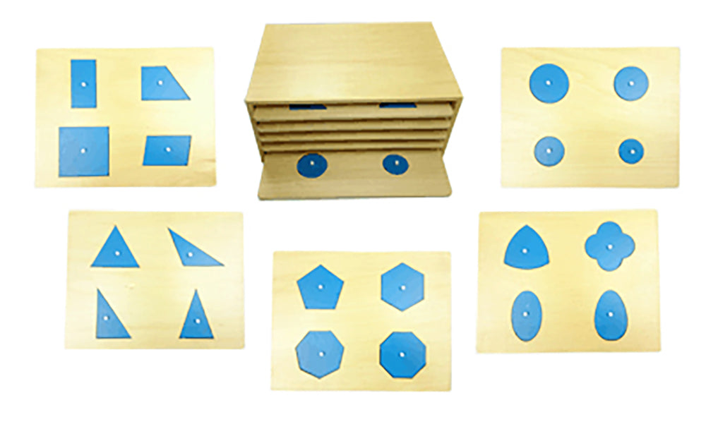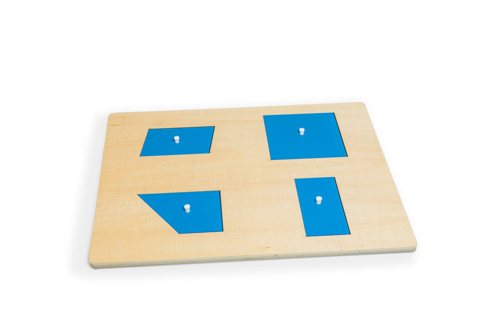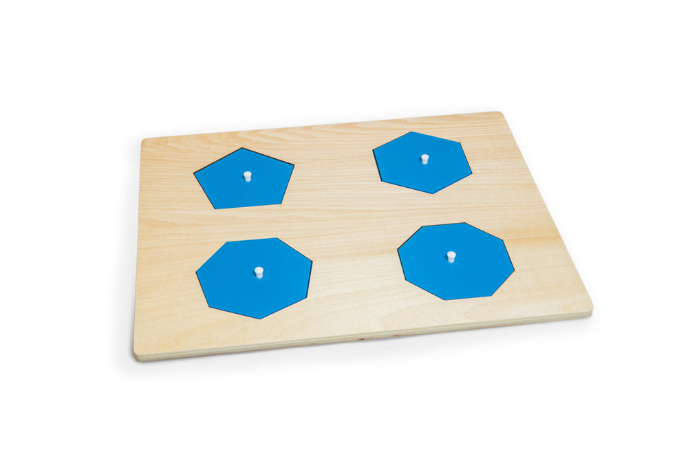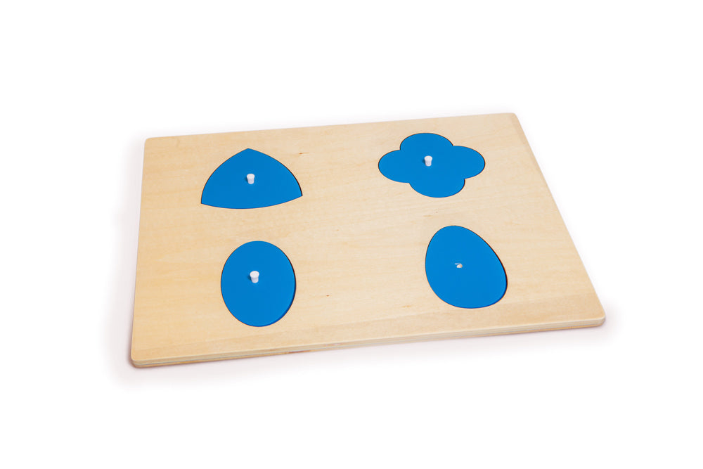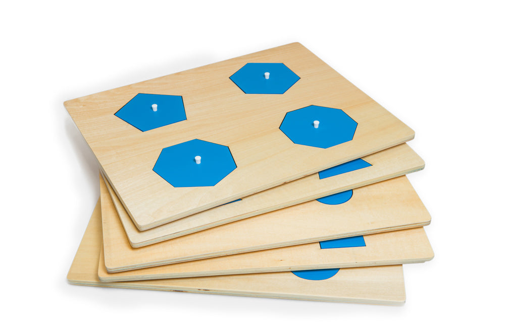 5 board puzzles each with 4 shapes: circles, triangles, regular polygons, curvilinear shapes and quadrilaterals.