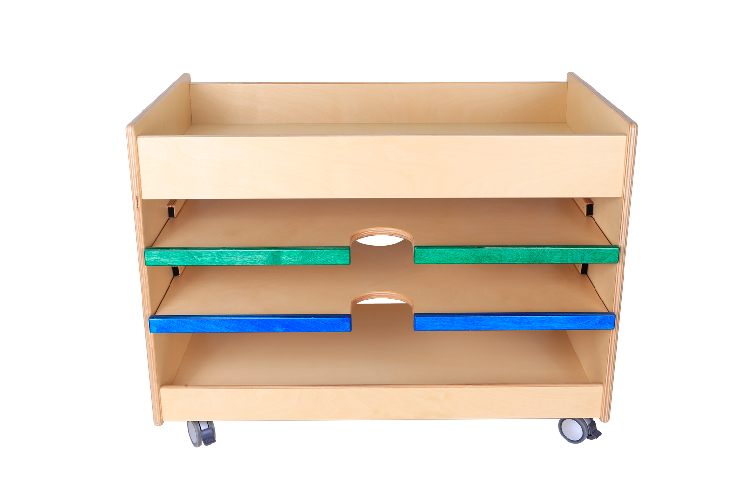 This Arts & Crafts Trolley on castors with paper or poster drawers and a large top compartment is made of birch plywood. (Contents not included)