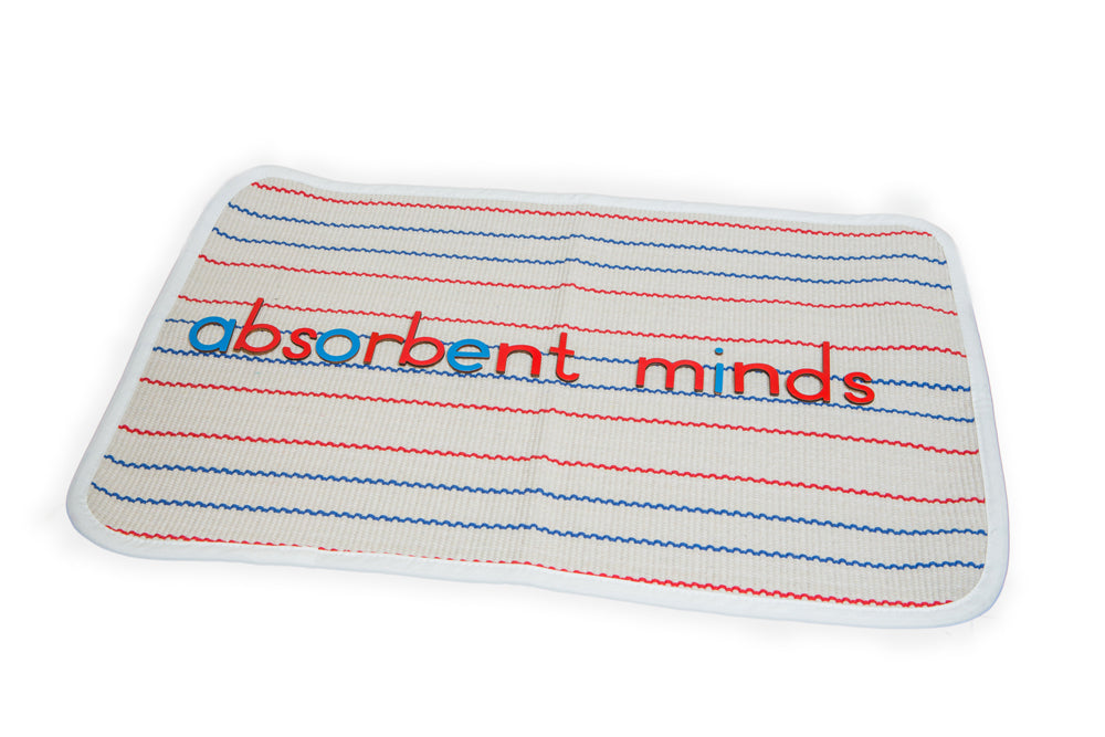 A 100% cotton mat with a non-slip base with lines to use as a guide for placing the letters.