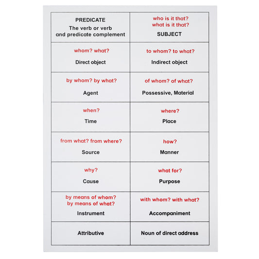 After the introduction of the Sentence Analysis material, this template is to be used with writing exercises. Template measures 4 x 13.2 cm.