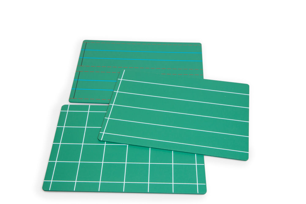 3 double sided chalk board one side blank, the other with lines, with squares or with handwriting lines. Ideal for writing and sums.