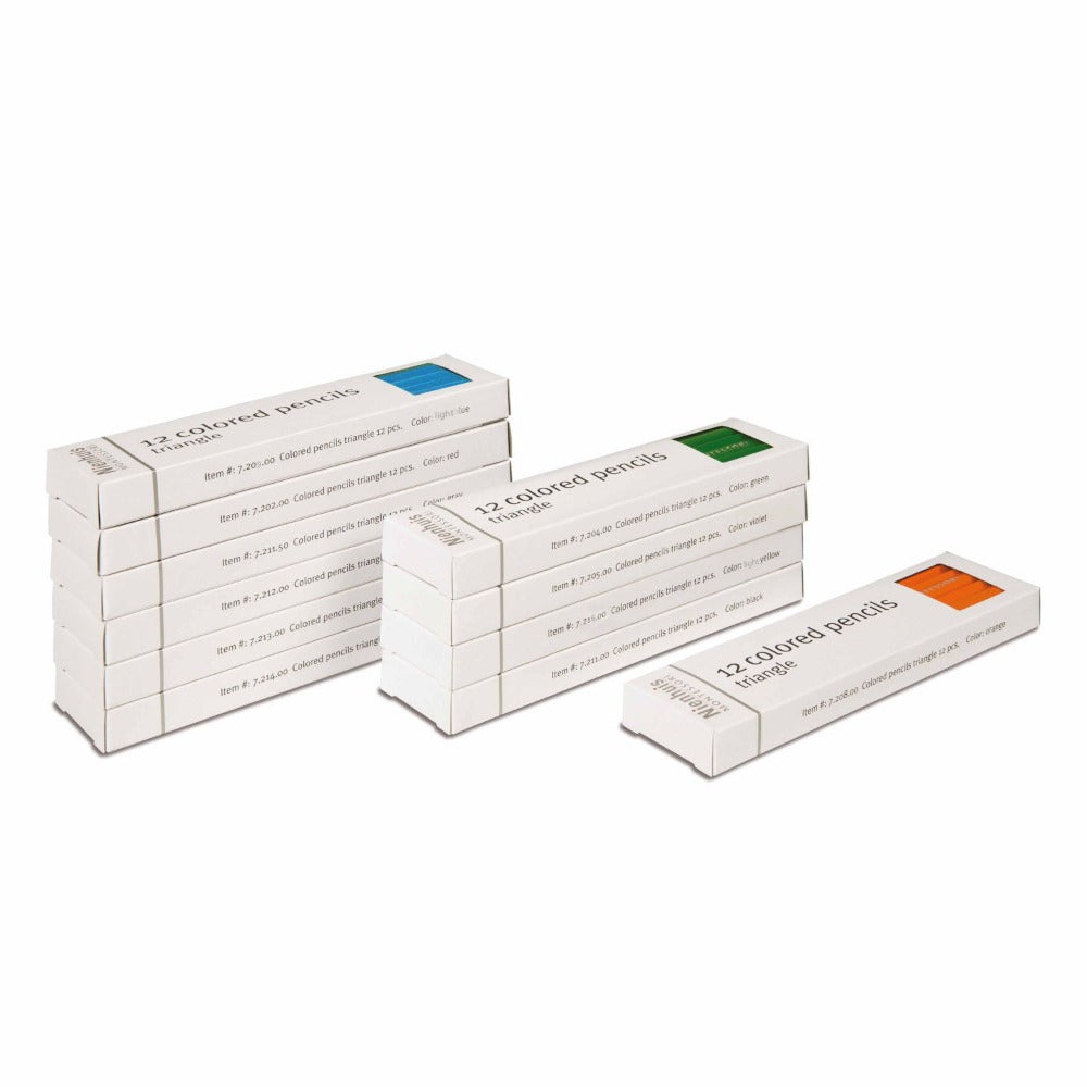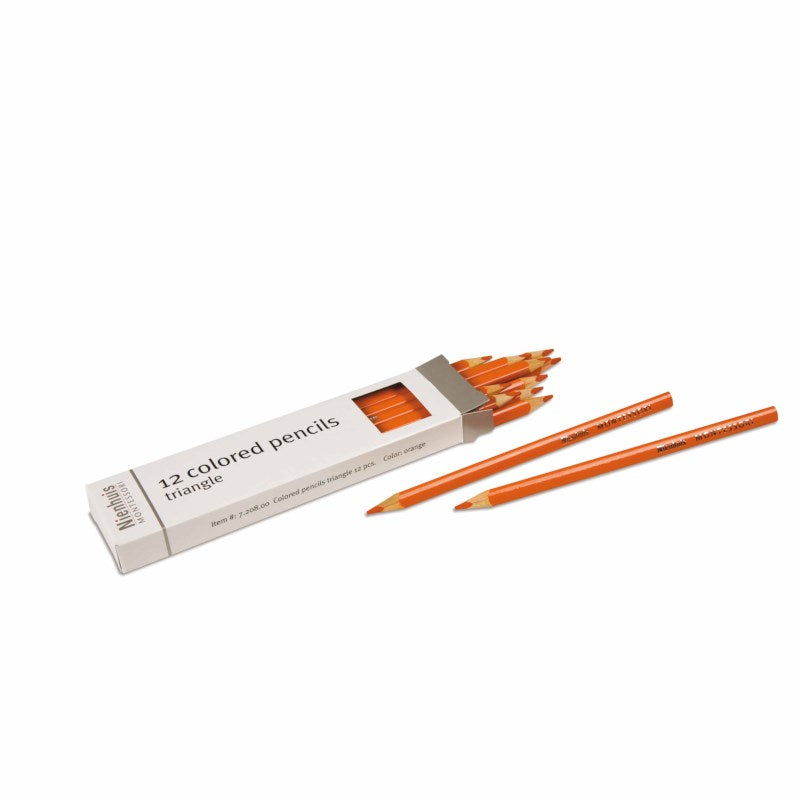 12 pencils each of 11 colours ideal for encouraging good pencil grip. The eleven basic colours of the Montessori system are included in this set of wooden pencils which match our pencil pots. The triangular shape encourages the child to naturally use the correct three fingered pencil grip.