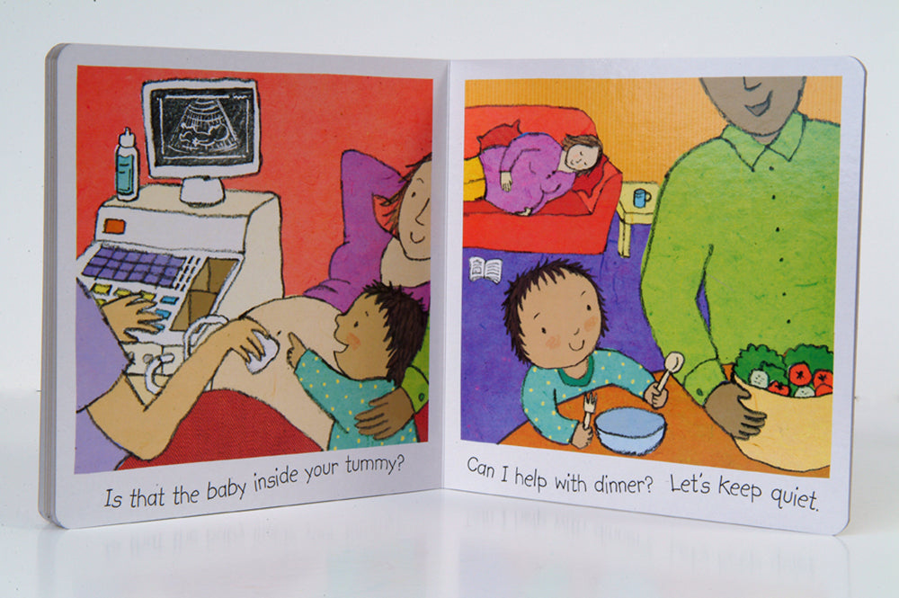 When you’re small, waiting for anything can seem to take a lifetime, especially when it’s a baby! There is so much to sort out for the new arrival – clothes, toys and a place to sleep. A new addition to any family is exciting, but the experience can also be worrying and confusing for siblings. Coping with the new situations and emotions that arise can be very challenging. This series of four board books deals with the anticipation of waiting for the new baby, the excitement of the arrival itself, and the beginnings of the special relationship that develops between siblings. The simple conversational text and lively illustrations are carefully designed to encourage further dialogue between reader and child.