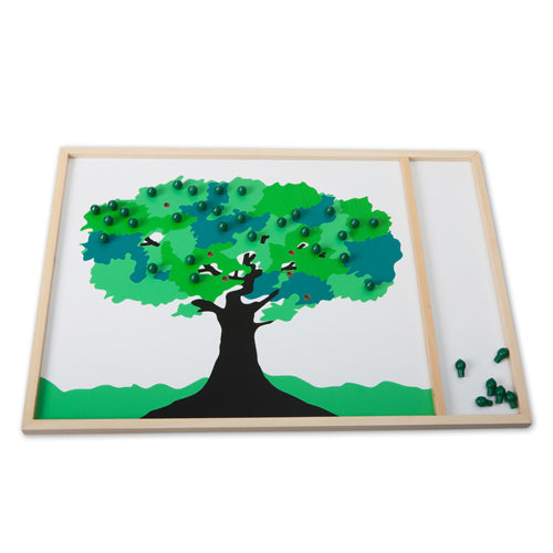 When using this material, children develop concepts in quantity recognition, more-than and less-than relationships, simple combinations of numbers, as well as the fundamentals of addition and subtraction. The game has different levels of complexity, making it possible for the children to develop skills progressively. The game can be played by two or more players.
