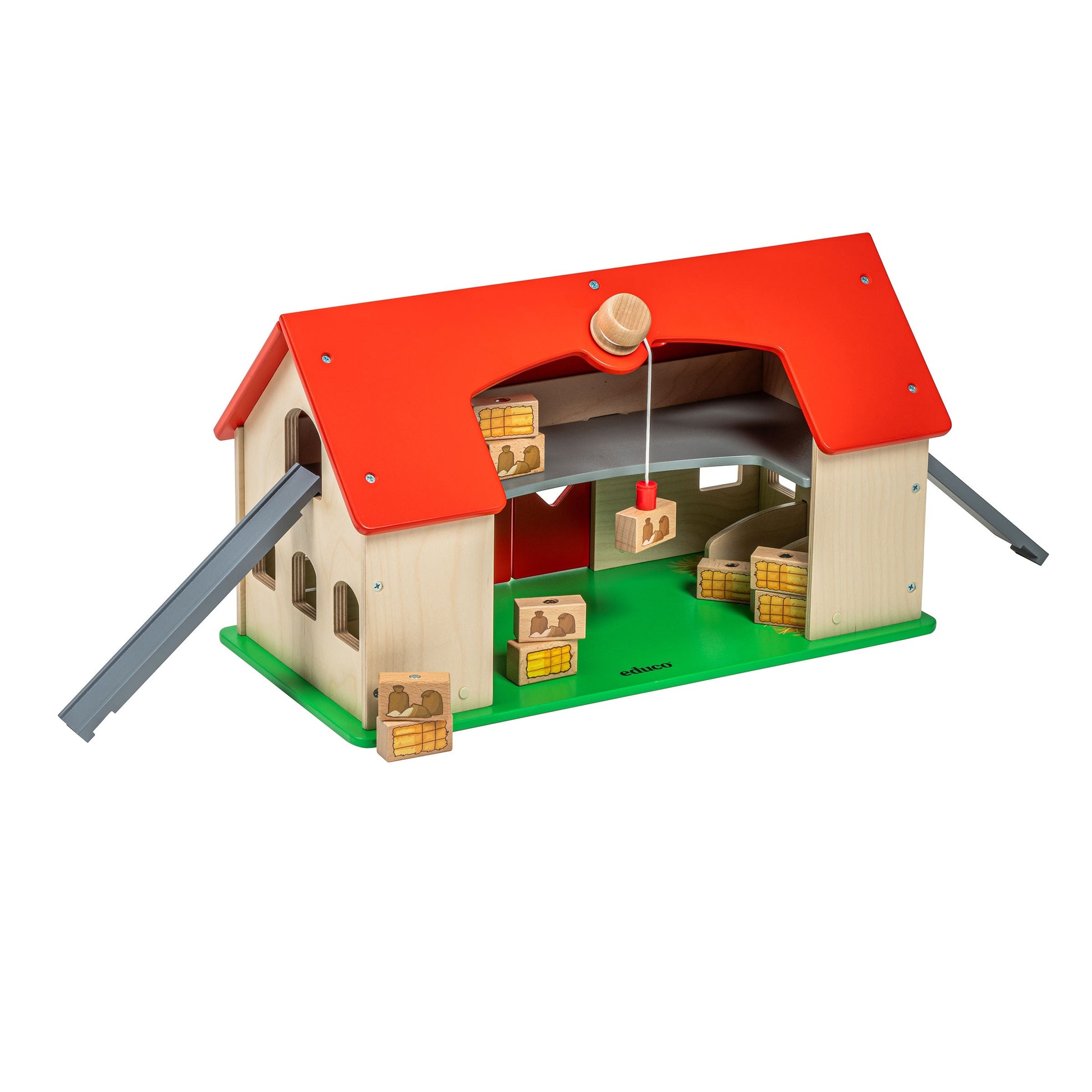 Take care of the animals in the stable or lift a bale of hay from the hayloft using the pulley. Use the hay bales to feed the animals or as decoration on the farm. The farm offers countless play possibilities: lift the roof to easily access the hayloft or pretend to be a farmer busy bringing in the harvest. Develop role-playing skills, stimulate problem-solving thinking, and discover the joy of teamwork.