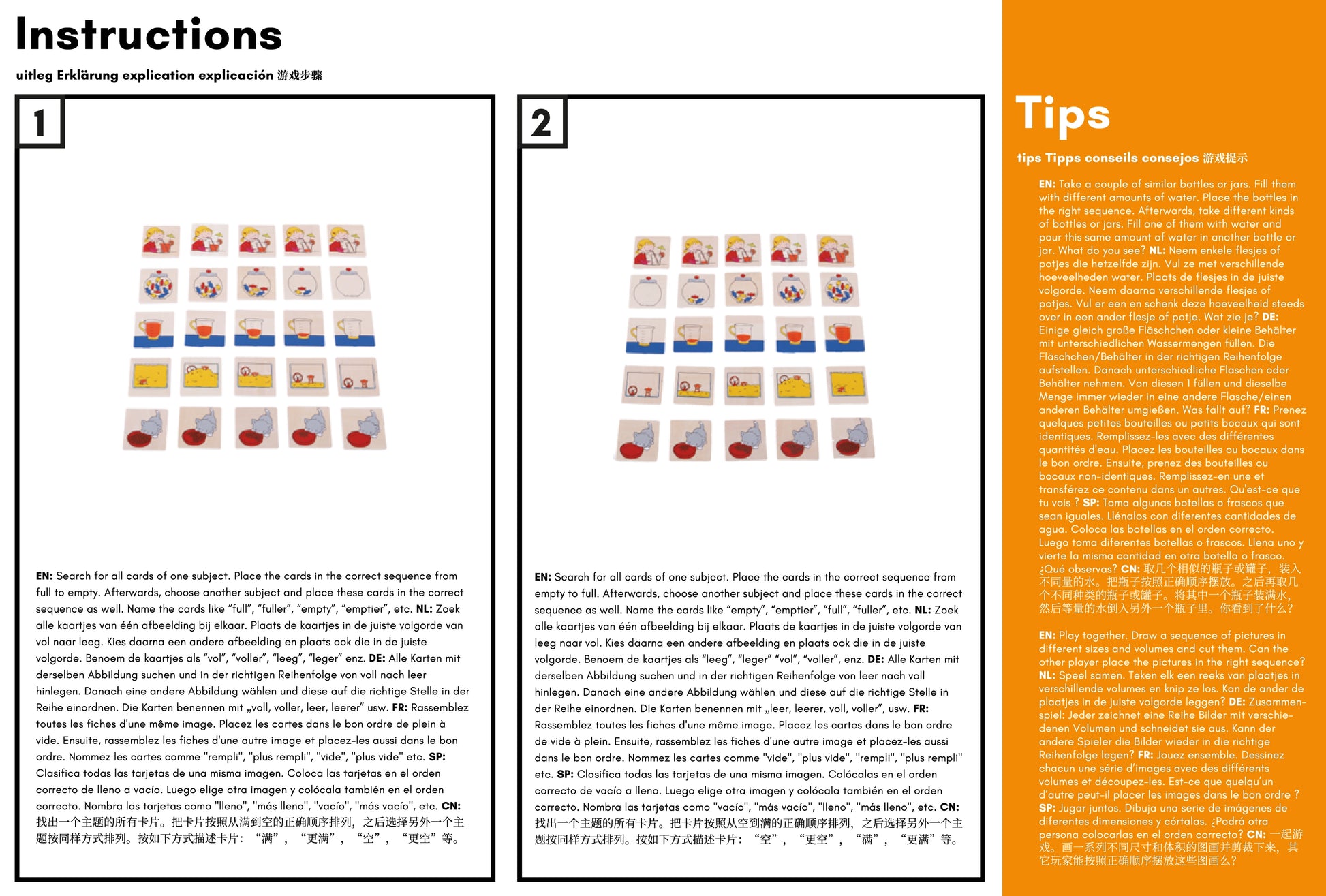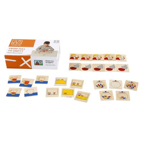 Sort the images from empty to full and vice versa. While playing, children learn about concepts such as “more than” and “less than”.