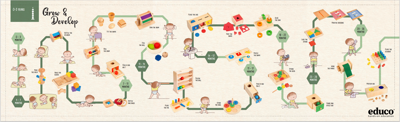 When children are around 7–11 months, they enjoy taking things apart and putting them back together again. This develops the child’s coordination. The child can hold two things at the same time. ‘Fit the Shape’ trains the coordination of both sides of the body as your child fits the shapes together.