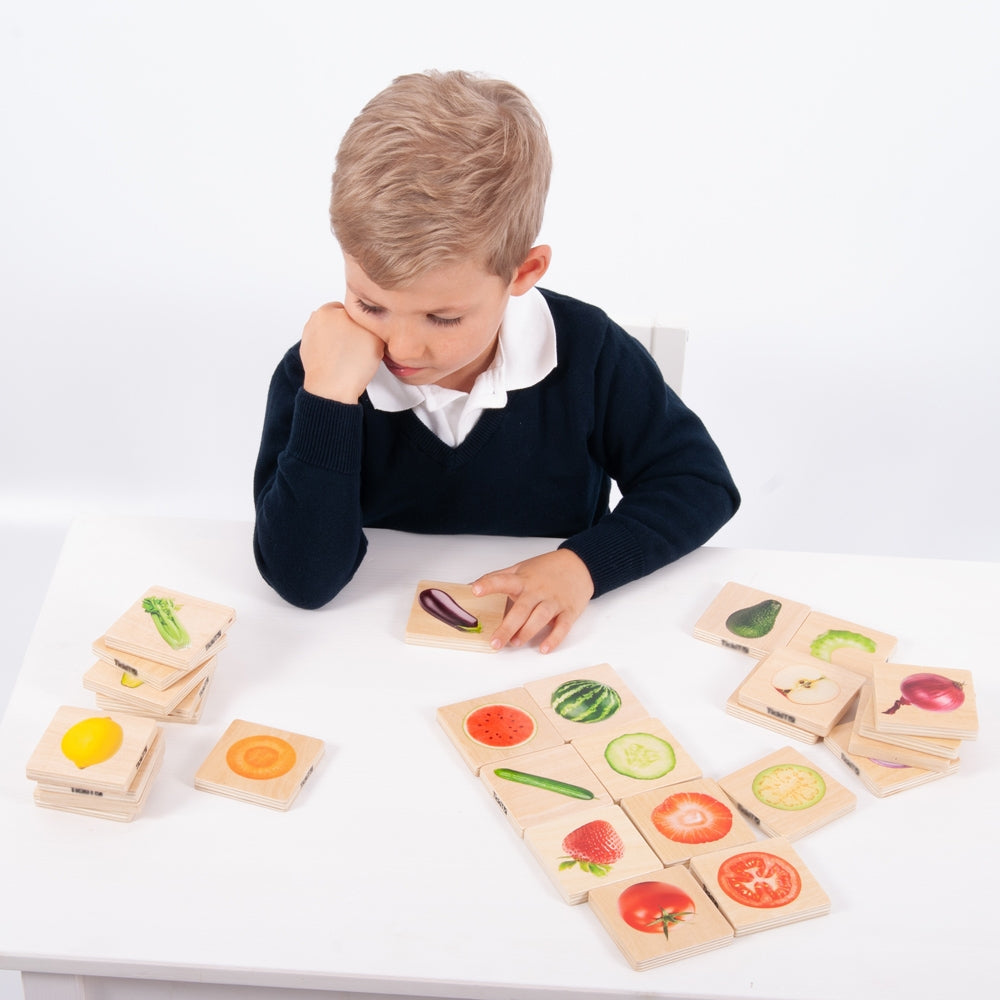 2. As a memory game - turn all the tiles face down and try to remember where the matching fruit or vegetable pairs are located.