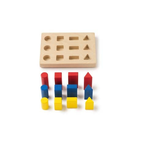 - 12 wooden blocks in 3 colours