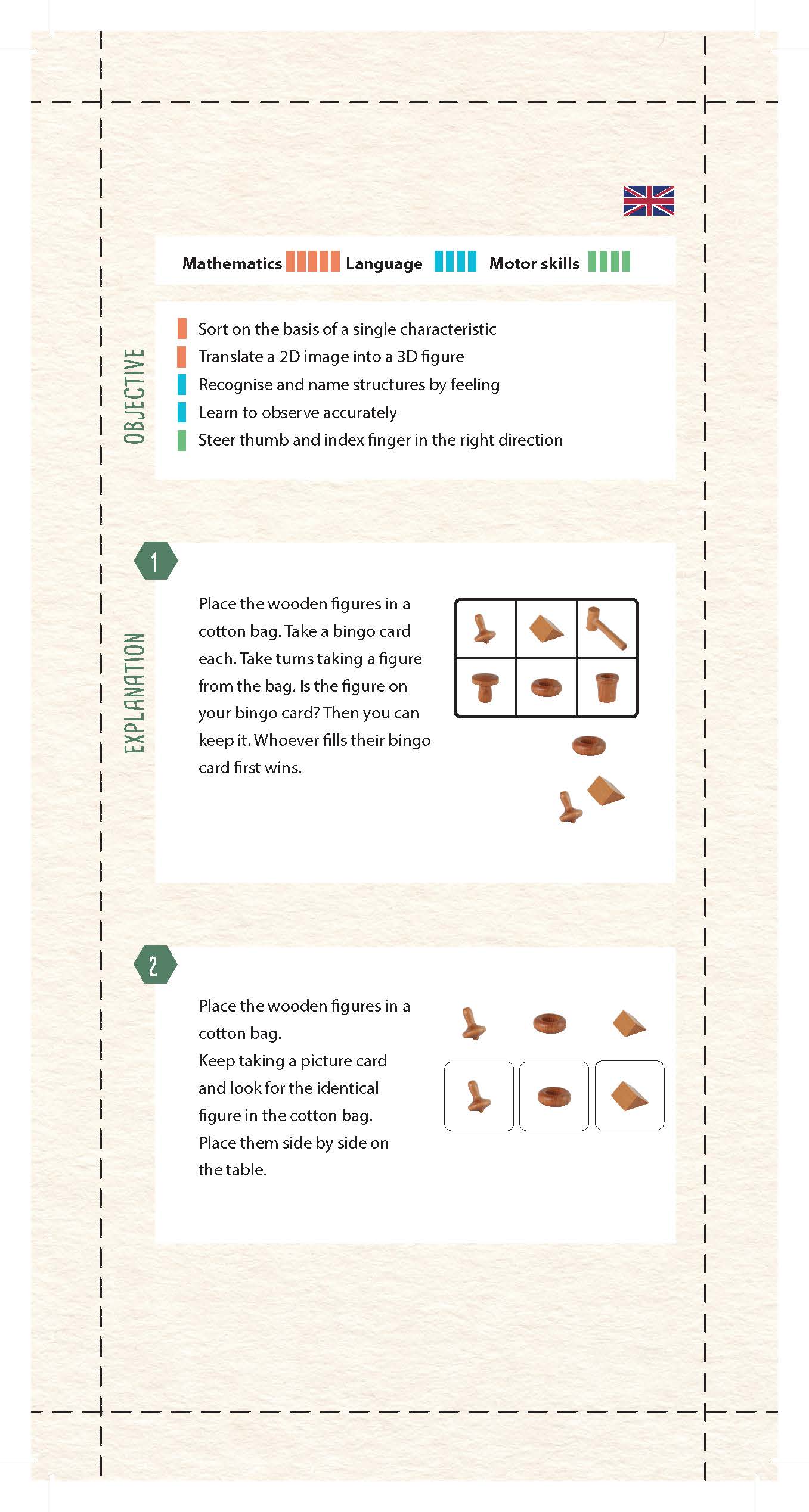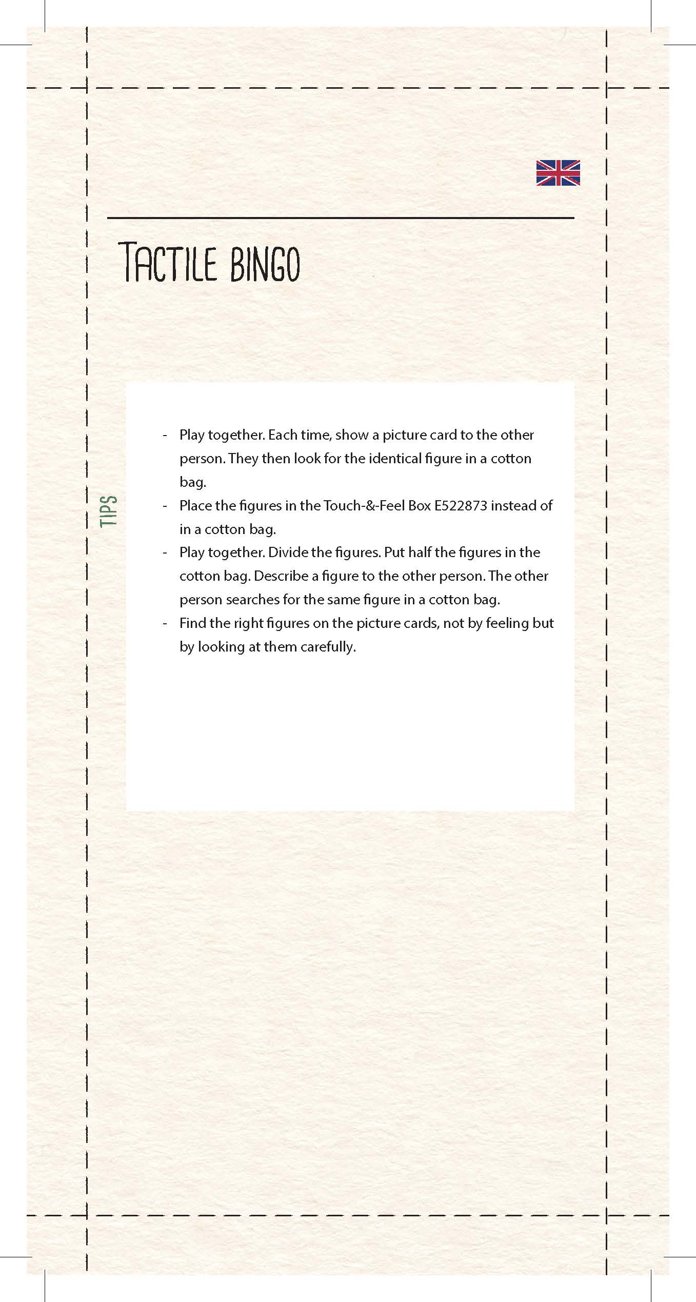 'Tactile Bingo' stimulates the motor skills and the perception of 2D and 3D shapes.
