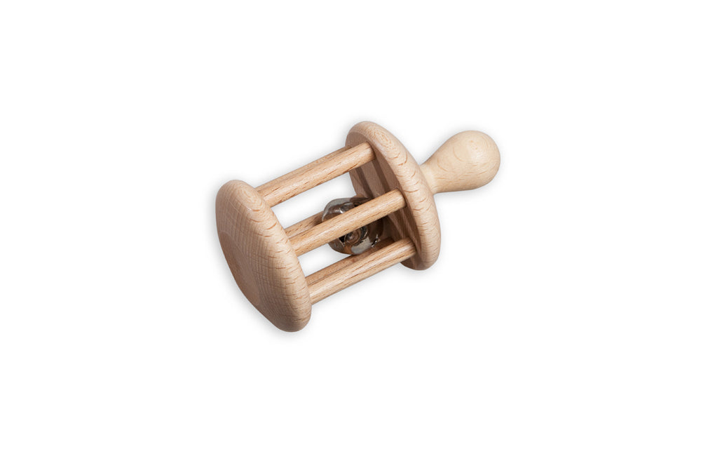 A lovely wooden bell rattle for young hands. Just the right size for practising grasping, shaking and dropping.