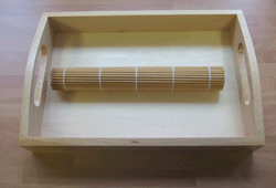 Lay a place setting on the mat, add a napkin and napkin ring for additional rolling practice.