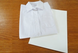Place the shirt face down, centre the card just below the collar, fold in sleeves and then fold up hem, slide out card over collar.