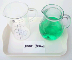 You may want a card in the tray stating the amount of water to be measured, note the different levels of the same volume in the different containers.