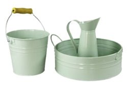 Wash the dishes using clean water in the bowl, and dirty in the bucket. Put to drain.
