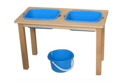 Scrub the table clean using clean water in the bowl, and dirty in the bucket. Wipe, then dry with a clean cloth.